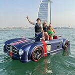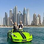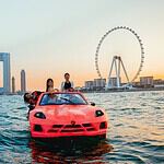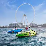 Glide across the glittering Arabian Gulf in a sleek Lamborghini-style water car, capturing iconic backdrops like Burj Al Arab, Atlantis The Palm, and Ain Dubai. Choose your adventure: a quick 15-minute adrenaline burst, a scenic 30-minute cruise, or a full 60-minute aquatic tour. Perfect for couples, solo riders, or groups with our 4-seater option.